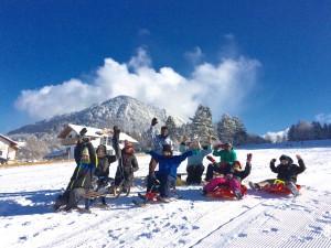 Alle sind tapfer durch den Schnee hoch gekraxelt. Eeeeendlich geschafft, oben angekommen – und dann